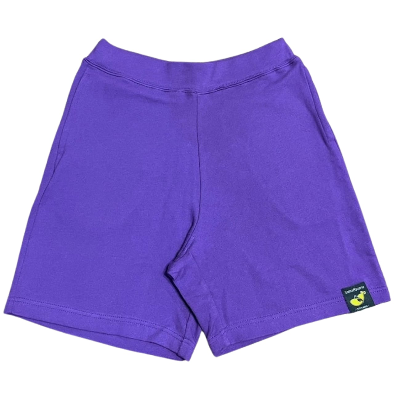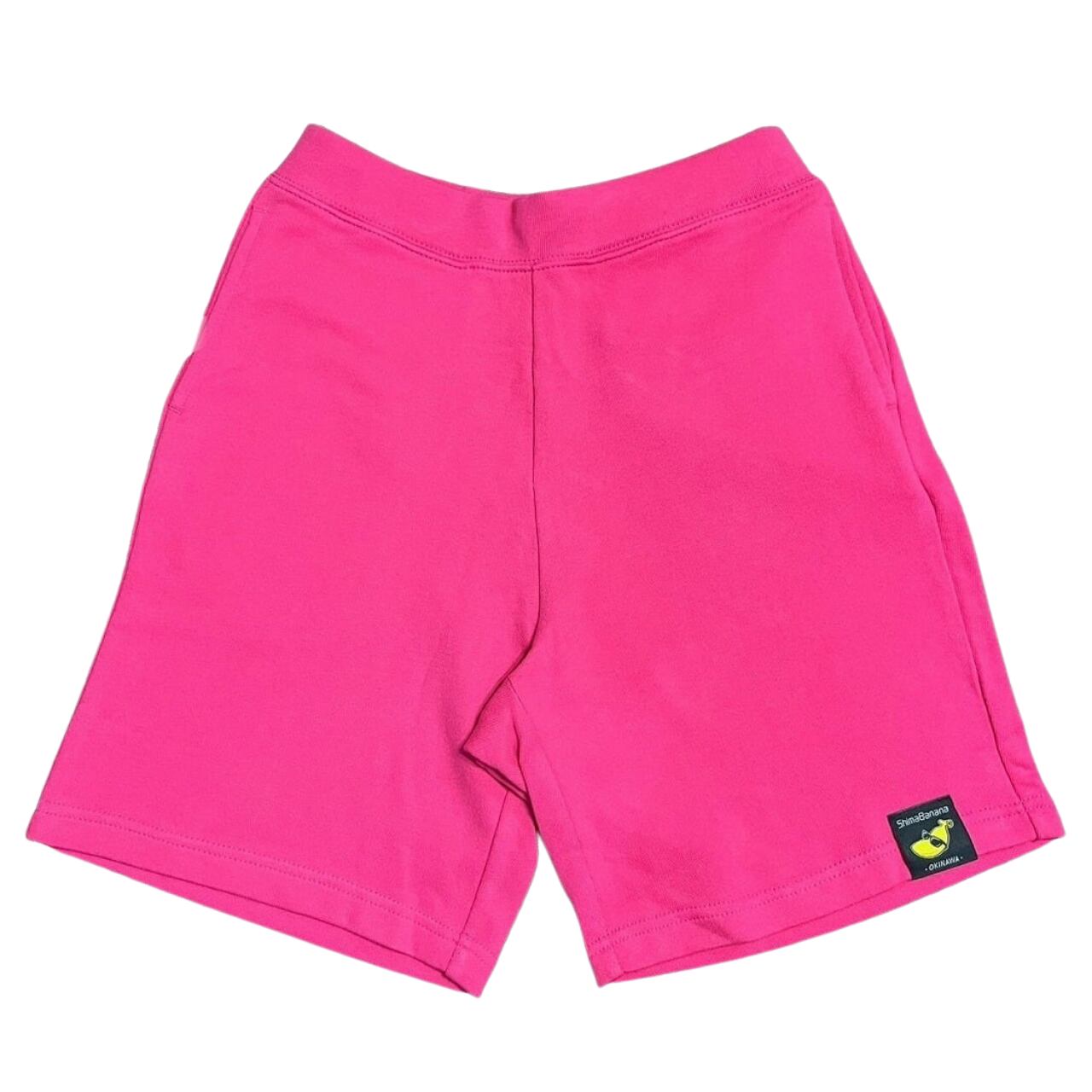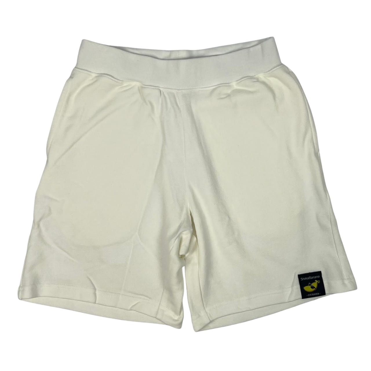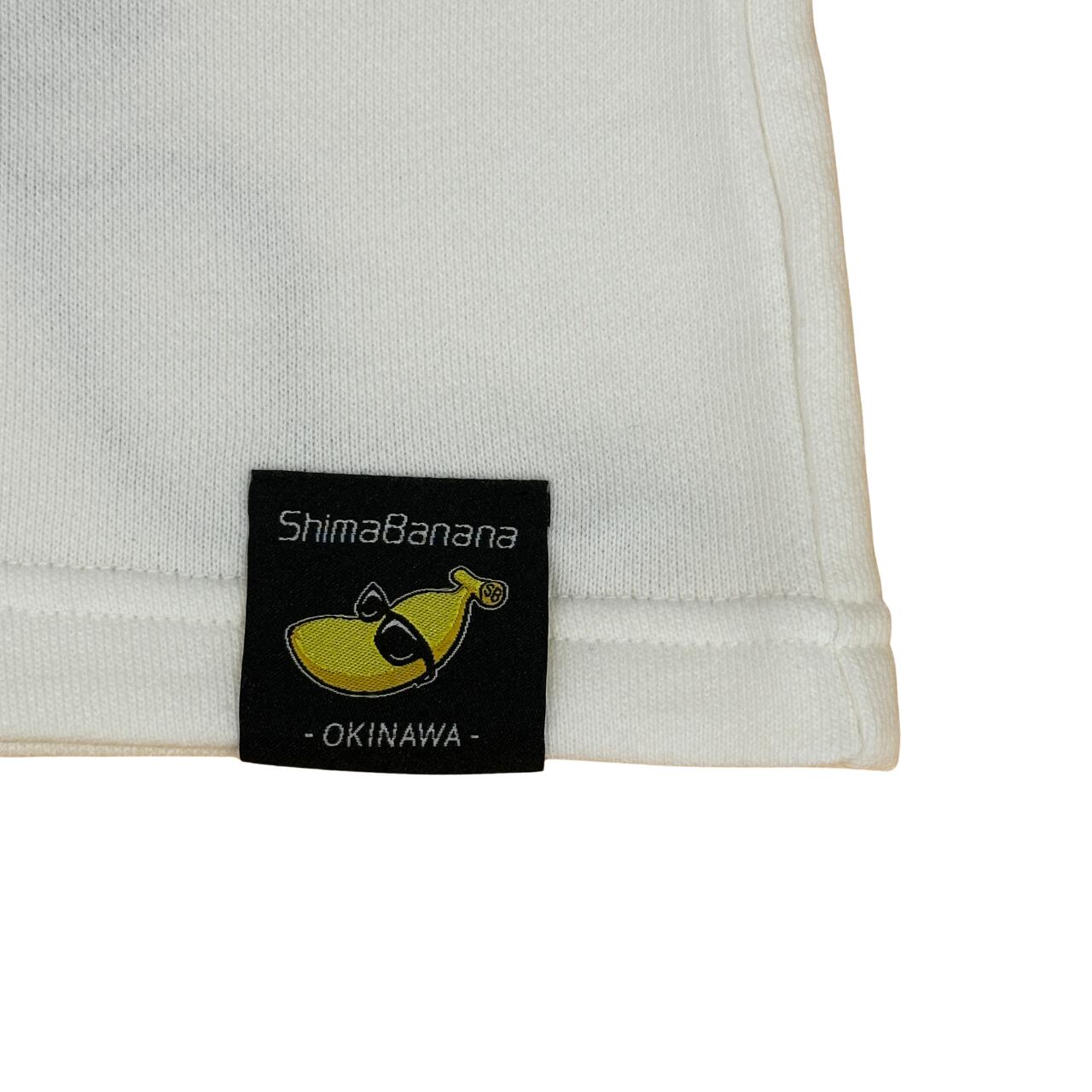 ShimaBanana 【沖縄県内工場加工】 スリムフィット・スウェットショーツ(裏パイル)は、前後の裾にブランドタグを縫い付けたシンプルな一枚です。